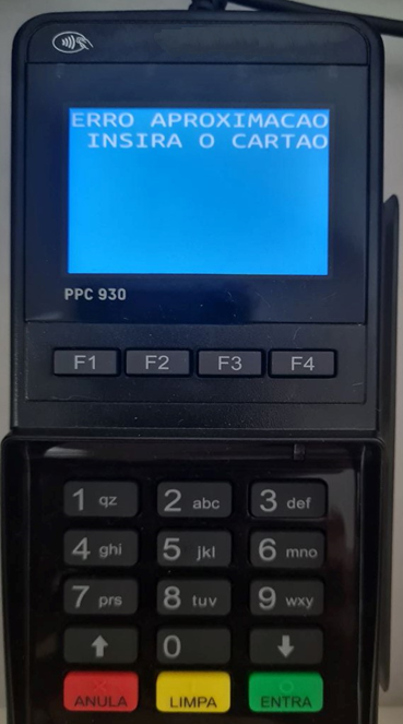 Quando a operação por aproximação é identificada e bloqueada, o teclado mostra a seguinte mensagem”: “ERRO APROXIMACAO INSIRA O CARTAO” (sic).
